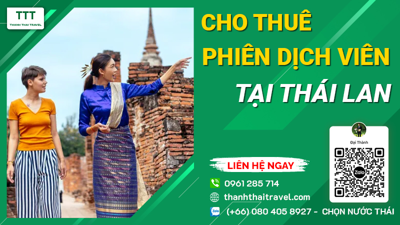 Hoạt động giao thương giữa hai nước Việt Nam và Thái Lan phát triển kéo theo nhu cầu thuê phiên dịch viên tăng cao. Thành Thái Travel mang đến giải pháp cho thuê phiên dịch viên người Việt biết tiếng Thái và phiên dịch viên người Thái biết tiếng Việt. Đội ngũ phiên dịch viên có chuyên môn và giàu kinh nghiệm tự tin mang lại kết quả cao cho công việc của quý khách.