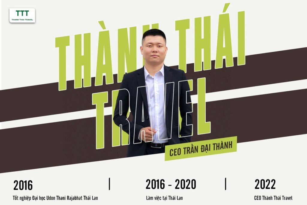 Công ty TNHH Thành Thái Travel (Thành Thái Travel) – được phát triển dựa trên công ty Chaidee ở Thái Lan, hoạt động trong lĩnh vực vận chuyển và du lịch Thái Lan. Người đại diện là ông Trần Đại Thành – cựu du học sinh Thái Lan. Mã số thuế Công ty TNHH Thành Thái Travel là: 3101116888. Hiện nay, chúng tôi đẩy mạnh phát triển các dịch vụ về du lịch với mong muốn kết nối du khách Việt Nam đến gần hơn với đất nước Thái Lan. Chúng tôi tự tin mang lại cho khách hàng những trải nghiệm ý nghĩa khi đồng hành cùng chuyến du lịch của bạn.