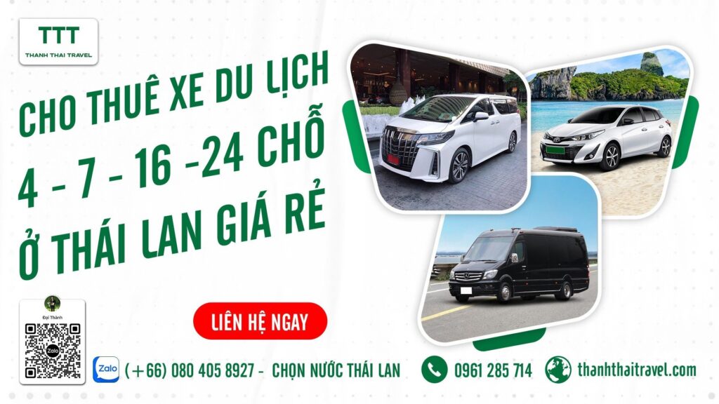 Thuê xe có lái ở Bangkok nhanh chóng, tiết kiệm tại Thành Thái Travel. Liên hệ với chúng tôi nay nếu bạn cần được hỗ trợ thêm thông tin nhé.