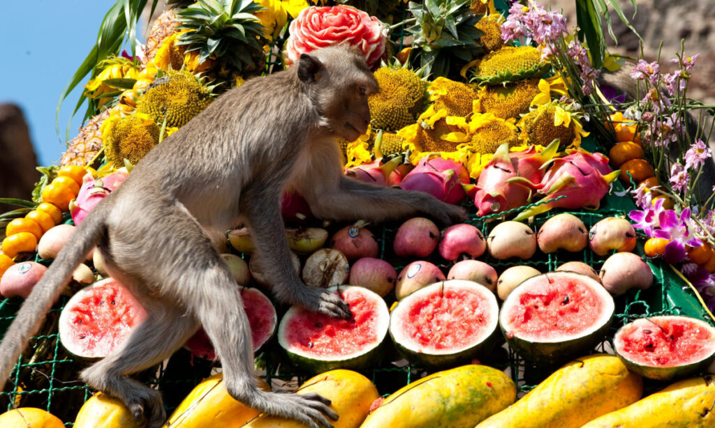 Thái Lan là địa điểm sinh sống của nhiều cá thể khỉ. Người dân Thái Lan rất quan tâm và tôn trọng loài khỉ. Lễ hội khỉ là cơ hội để người dân thể hiện sự biết ơn đối với loài khỉ đã góp phần thu hút khách du lịch. Những bữa tiệc trái cây và rau củ dành riêng cho khỉ sẽ được tổ chức tại tỉnh Lopburi. Hàng trăm con khỉ đuôi dài sẽ thoải mái thưởng thức các món ăn ngon trước mặt du khách.